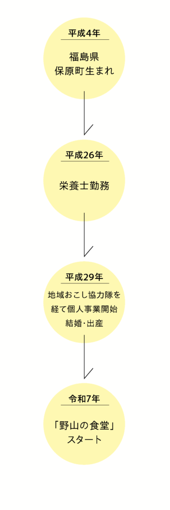 大学卒業後、福島で栄養士として働きはじめた野木さん。高齢者施設で耳にした「昔の味が食べたい」というひと言に心を動かされ、郷土料理の奥深さと温もりに惹かれていきます。やがて大江町の地域おこし協力隊として、食を通じた活動に歩みを進めました。