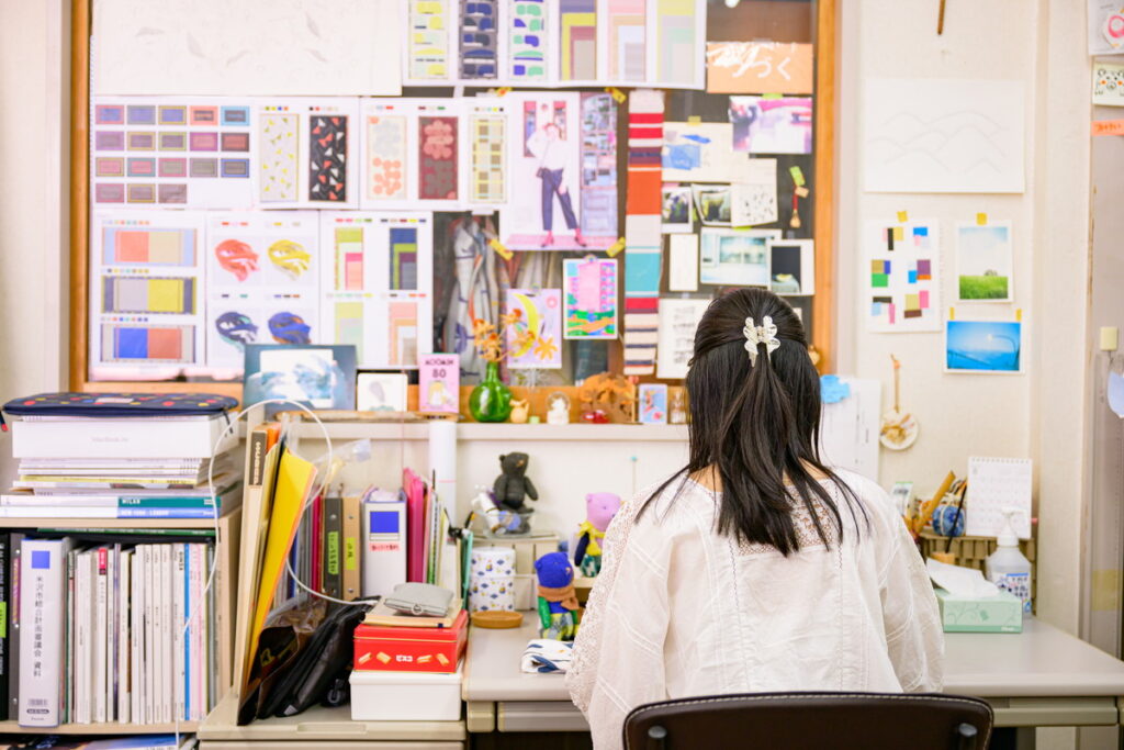 神奈川県藤沢市から米沢に移り、テキスタイルデザインを通してこの土地の魅力や文化を世界へ発信しています。人の温かさにあふれる米沢市では、自分と向き合う時間の大切さと、仲間と協力して挑戦する喜びを学びました。米沢から世界に向けて挑戦を続ける中で、皆さんも自分の可能性を信じ、仲間と共に未来を描いてほしいです。