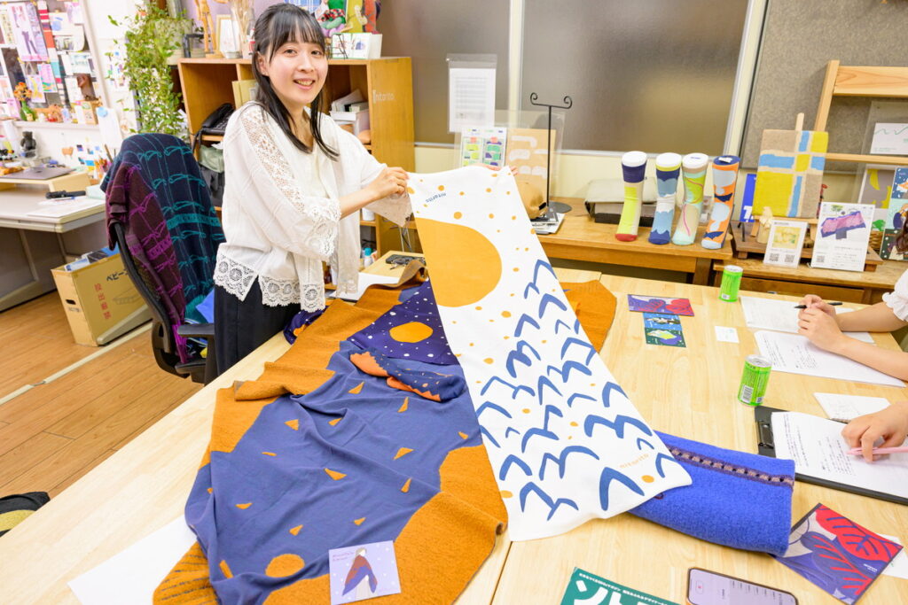 それから、海外進出にも挑戦したいです。日本の着物は海外でも高く評価されていますが、実際に着るのはハードルが高く、飾るだけになりがちと聞きます。そこで生まれたのが、米沢文化のひとつである着物から着想した「WASABI」。和の柄や着物を思わせる襟の形など、着物のエッセンスとnitoritoらしい遊び心をコンパクトにまとめたニットキルトストールで、海外の方にも気軽に身につけてもらえるようデザインしています。今は、made in YONEZAWAを海外も含めた多くの方に届けられるよう、PRに力を入れているところです。